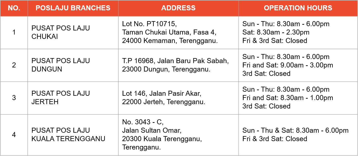 I went to johor bahru branch, they said my item at pasir gudang. 12, jalan bandar, pusat perdagangan, . Or visit us by this address: New poslaju pasir gudang, no 9, jalan ihp 1/11 & no 10, jalan ihp 1/10 iskandar halal park, 81700 pasir gudang, johor, malaysia . For more information, please contact us directly by phone: